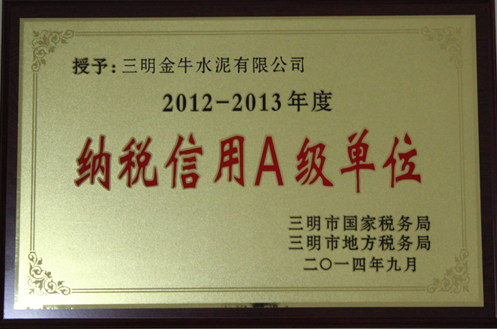 三明金牛水泥有限公司被授予了“2012-2013年度纳税信用A级单位”称号 羞羞漫画官网,喜获殊荣,...。